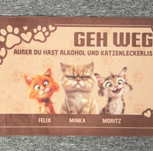 Lustiger Spruch Über Alkohol Und Katzenleckerlis - Personalisiertes Geschenk | Fußmatte für Katzenliebhaber