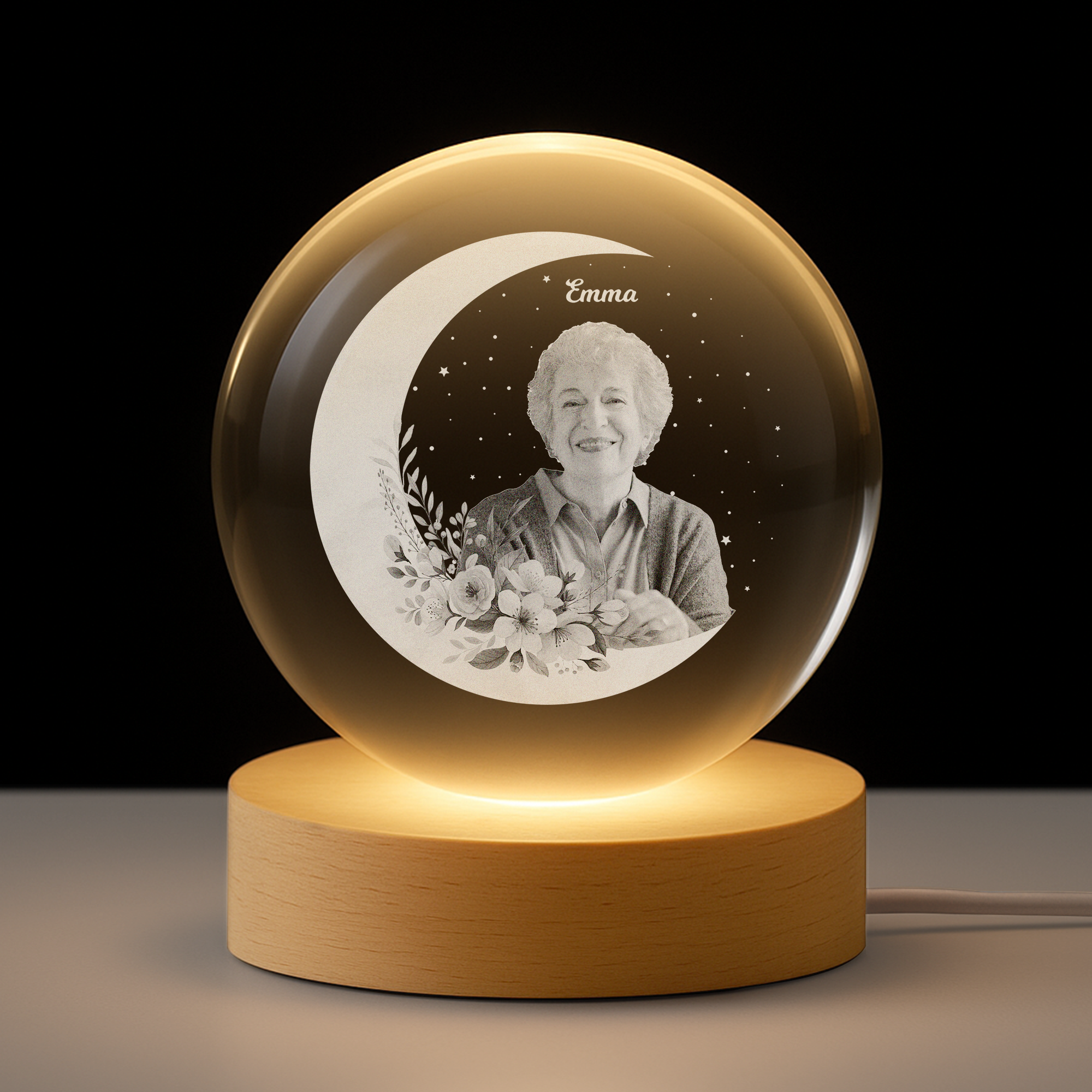 - Gute Qualität: Hergestellt aus klarem K9 Kristall mit stabilem Holzsockel, LED Licht und USB Anschluss.