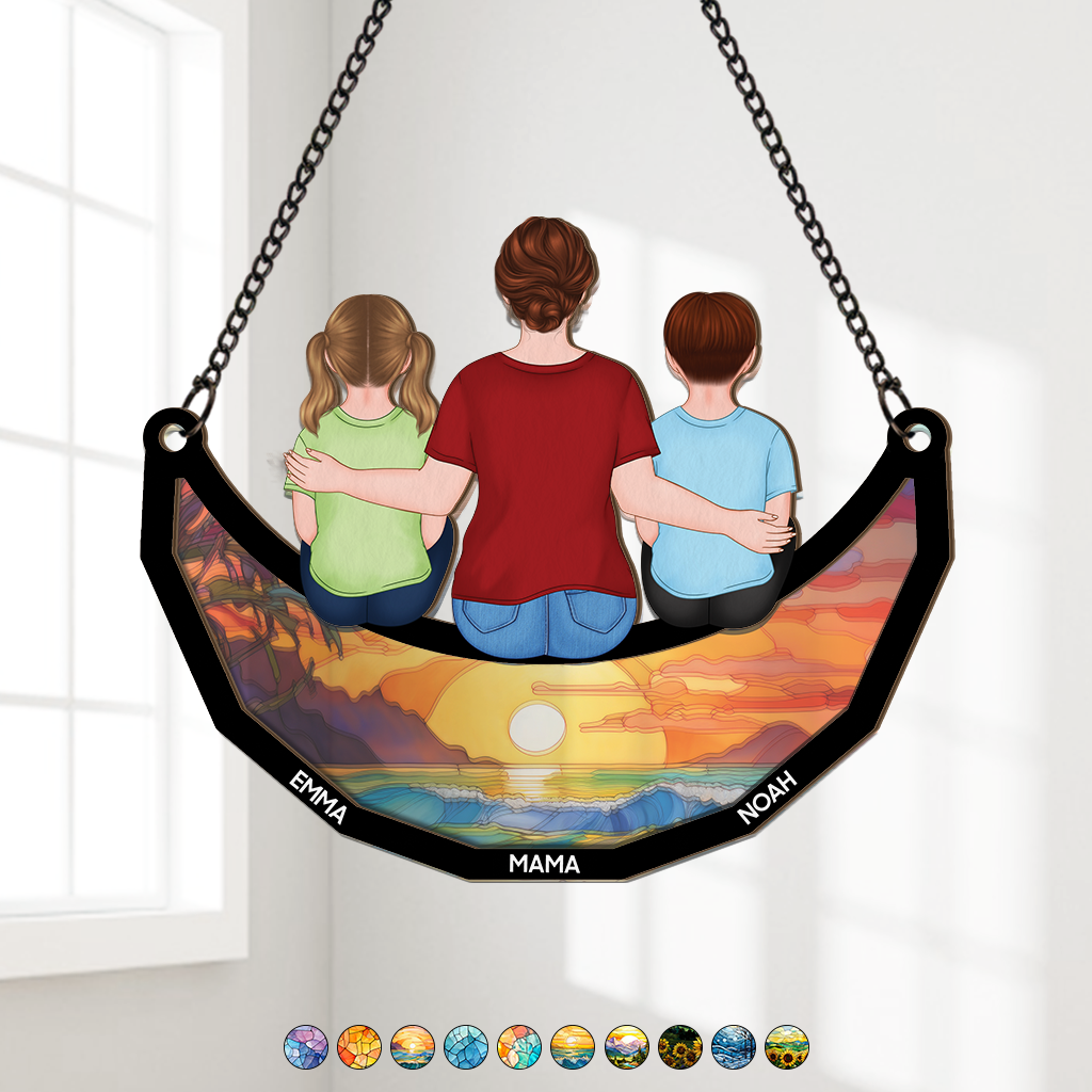 Mama & Kinder Mit Dem Rücken Zugewandt - Personalisiertes Geschenk | Sonnenfänger für Mamas