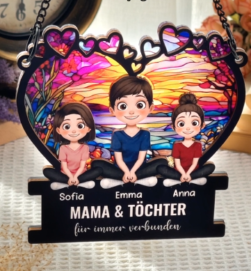 Mama/Oma Und Kinder Für Immer Verbunden - Personalisiertes Geschenk | Sonnenfänger-Ornament für Mamas/Omas
