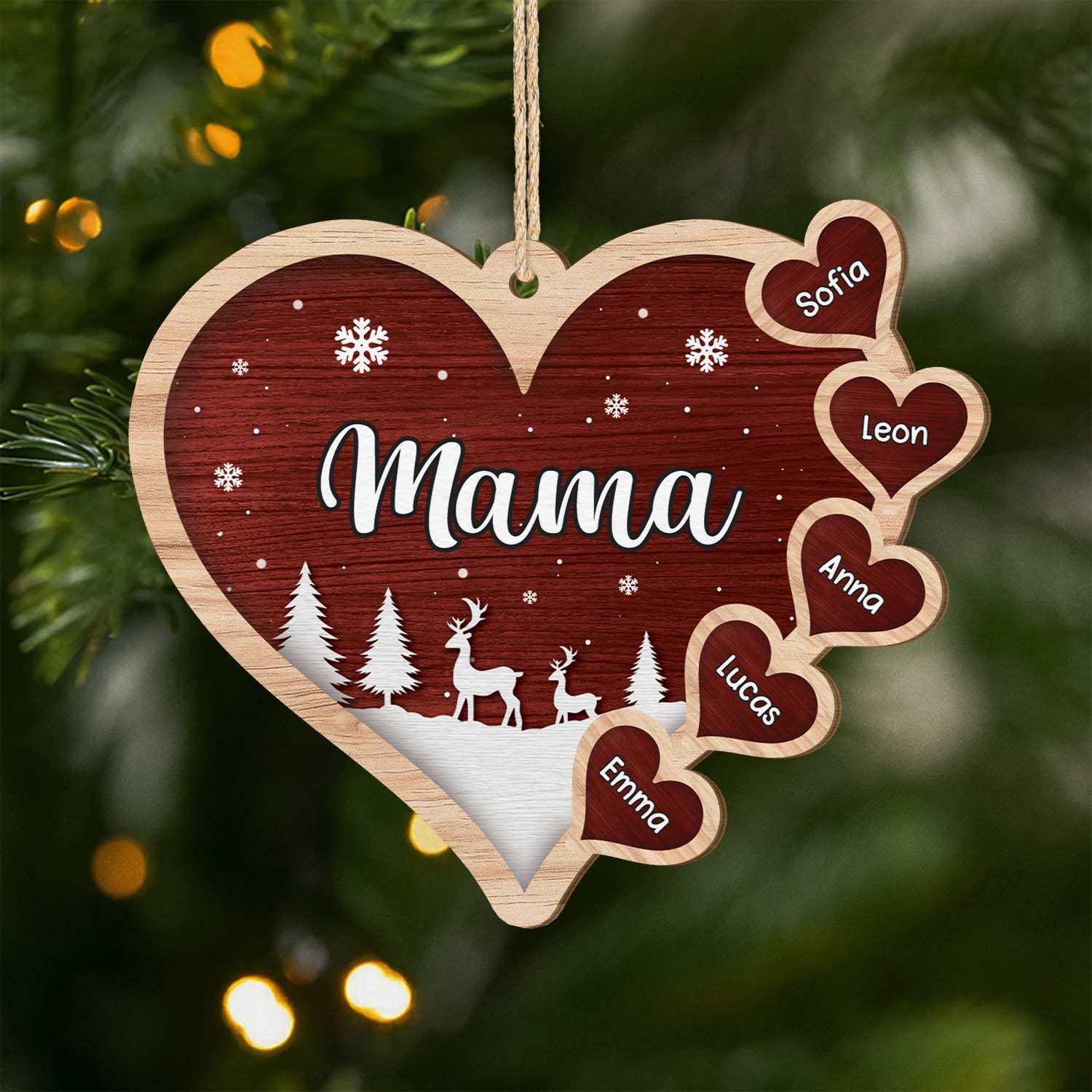 Mama Und Kinder Herzen - Personalisierte Geschenke Für Mama | 1-Schicht-Holz-Ornament