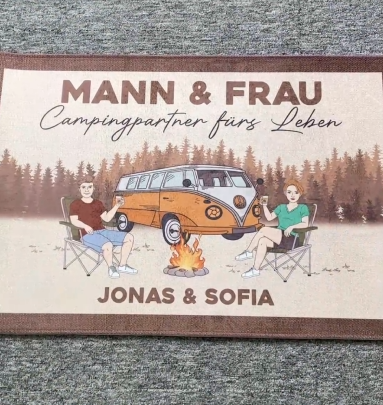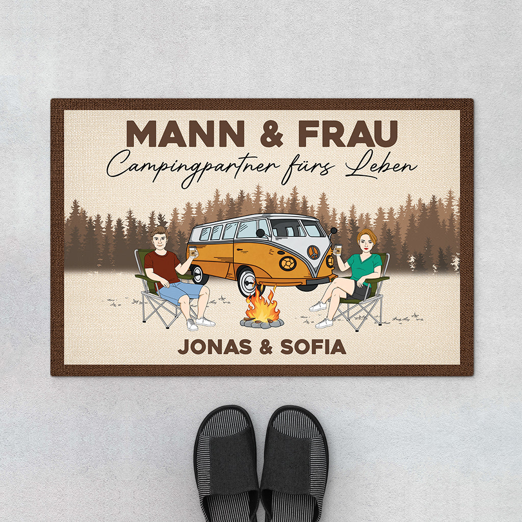 Mann & Frau Campingpartner Fürs Leben - Personalisiertes Geschenk | Camping Fußmatte für Paare