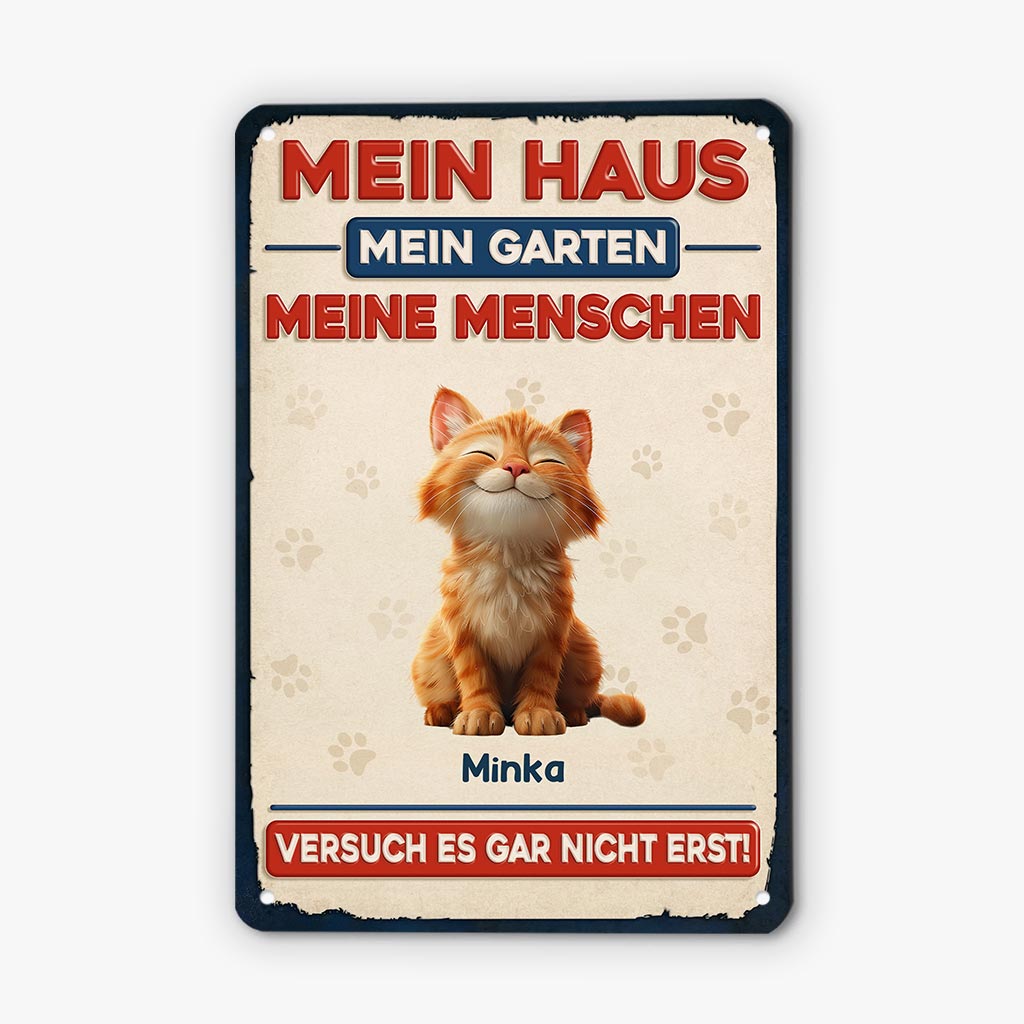 Mein Haus Mein Garten Meine Menschen - Personalisierte Geschenke Katze | Türschild