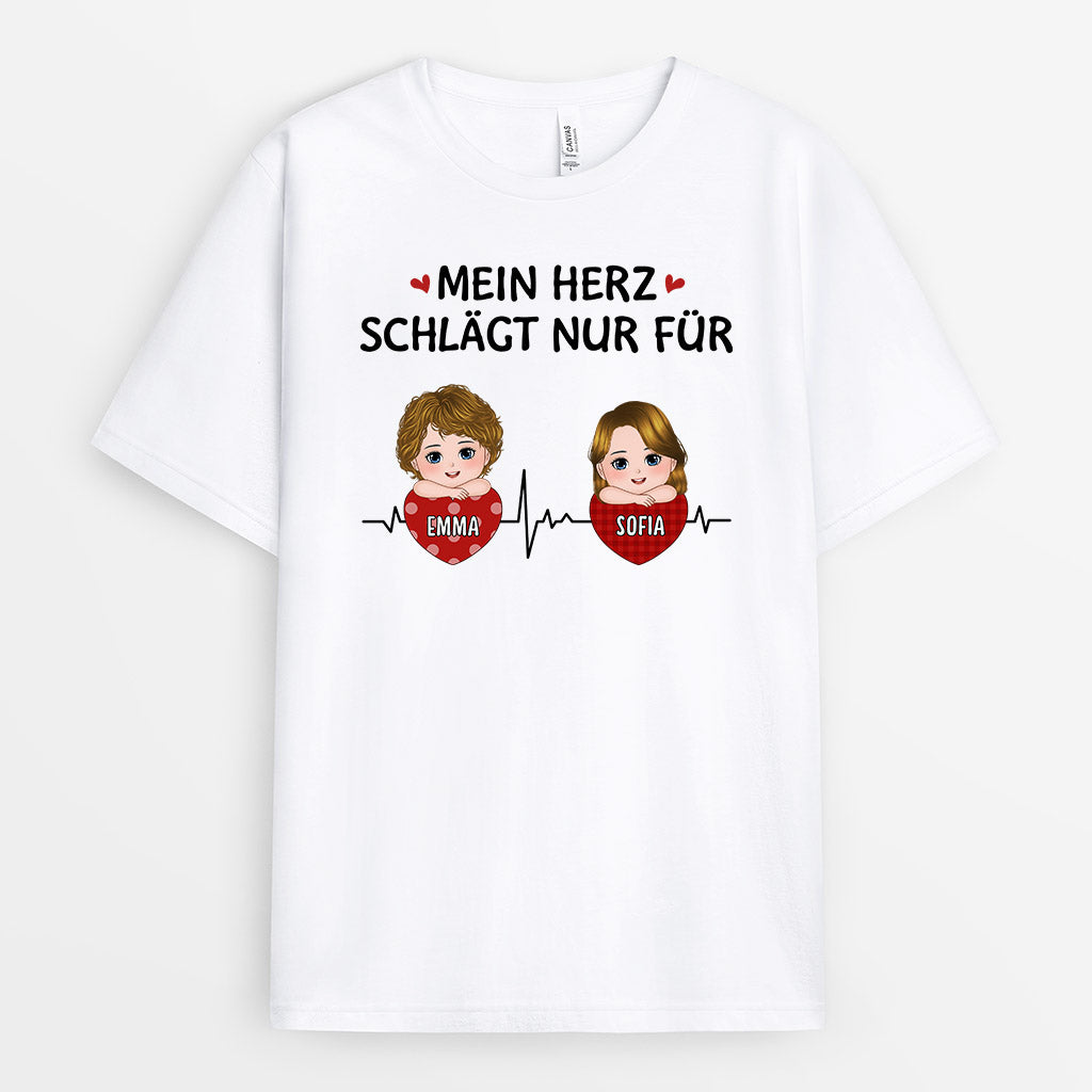 Mein Herz Schlägt Nur Für - Personalisierte Geschenke | T-Shirt für Mama/Papa