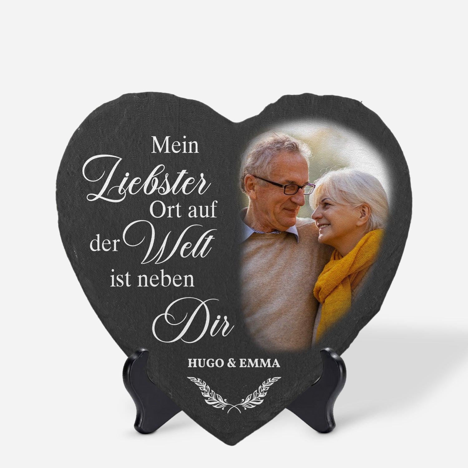 Mein Liebster Ort Auf Der Welt Ist Neben Dir - Personalisiertes Geschenk | Gedenkstein Paar mit Foto