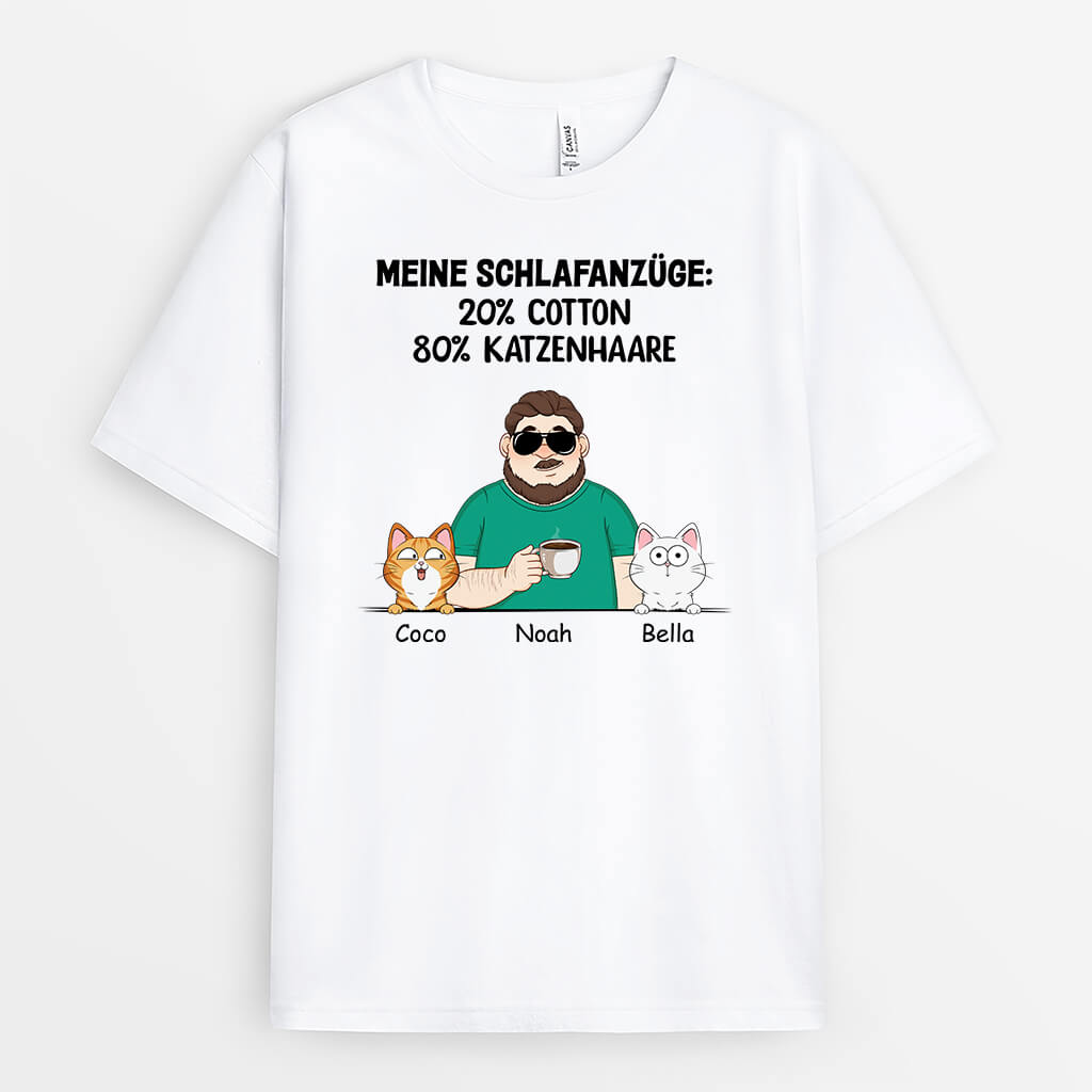 Mein Pyjama 20% Baumwolle 80% Katzenhaare - Personalisiertes Geschenk | Weißes T-Shirt für Katzenliebhaber