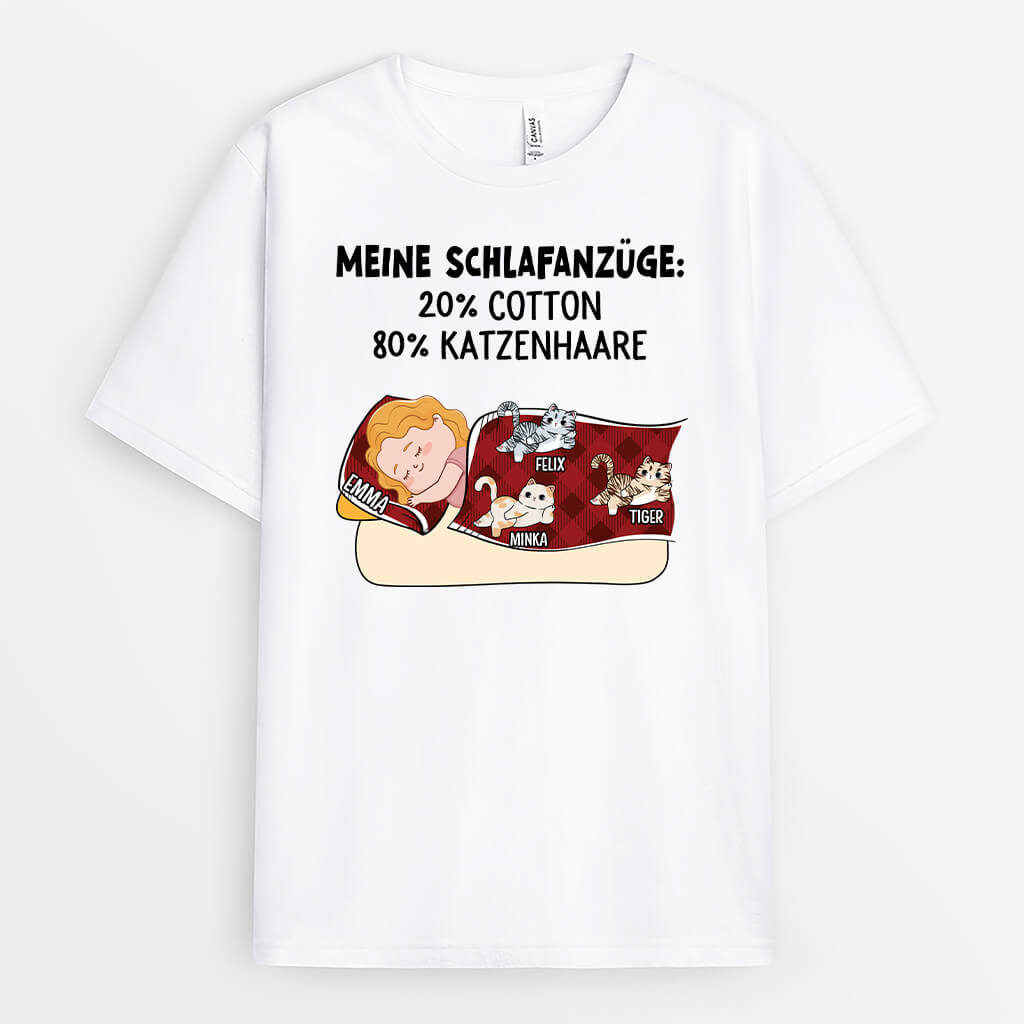 Meine Schlaf Anzüge 20% Cotton 80% Katzenhaare - Personalisiertes Geschenk | T-Shirt für Katzenliebhaber