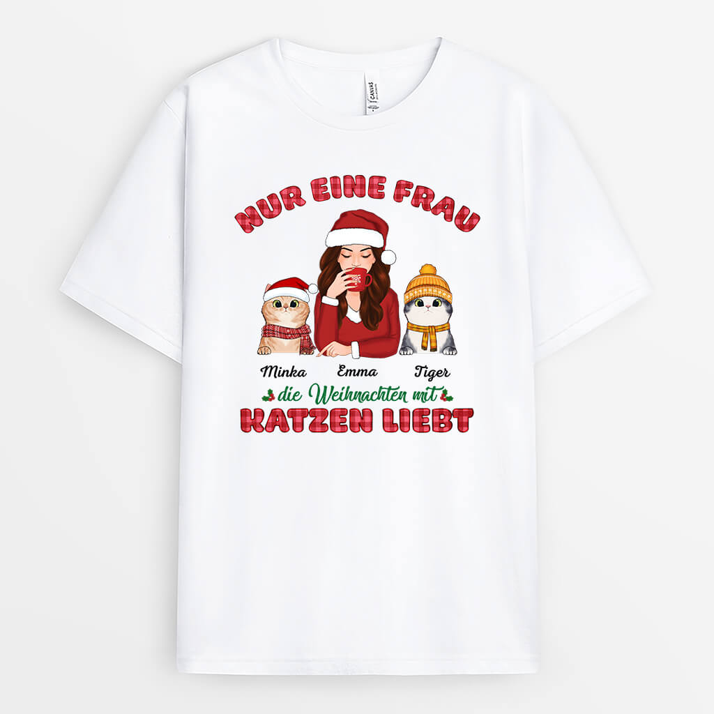 Nur Eine Frau Die Weihnachten Mit Katzen Liebt - Personalisiertes Geschenk | T-shirt für Katzenliebhaber