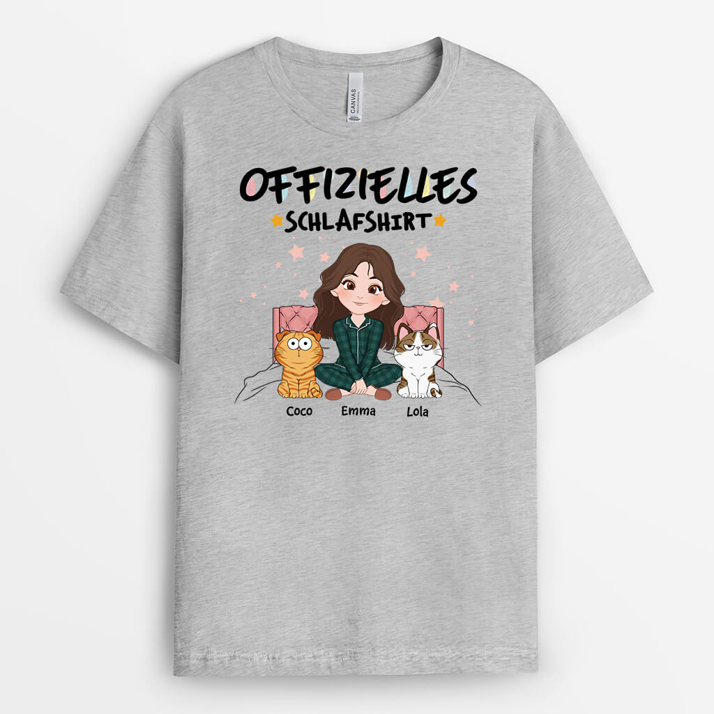 Offizielles Schlafshirt Der Mensch Und Katzen Setzen Sich Auf Das Bett - Personalisiertes Geschenk | T-Shirt für Katzenliebhaber