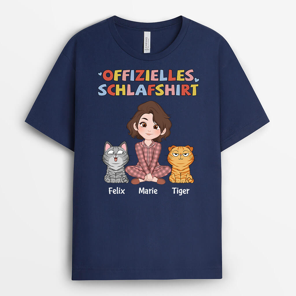 Offizielles Schlafshirt - Personalisiertes Geschenk | T-Shirt für Katzenliebhaberin mit verspielten Katzen