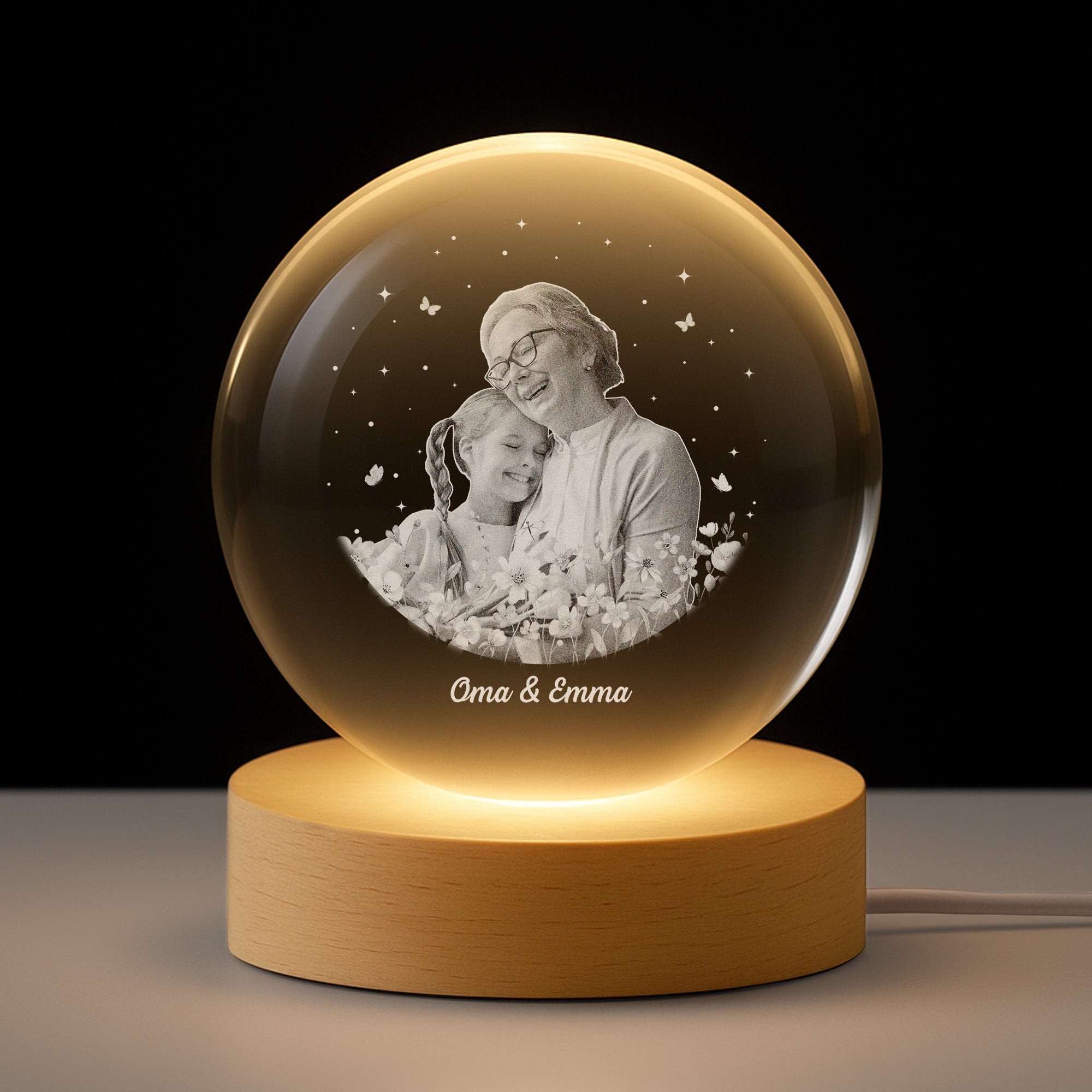 Oma & Enkelkinder Blumen - Personalisierte Geschenke Foto | Kristallkugel Oma/Mama