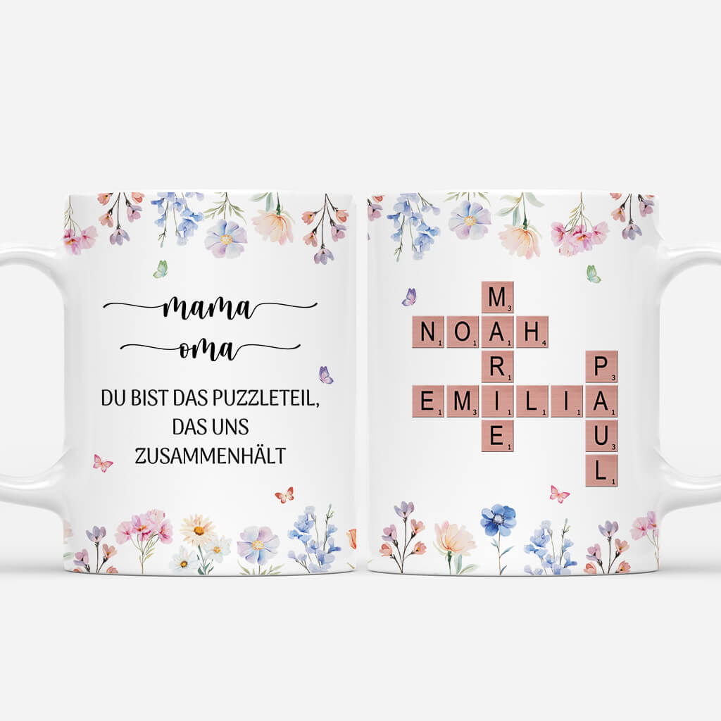 • Oma/Mama Bist Das Puzzleteil Blumen - Personalisiertes Geschenk | Tasse für Omas/Mamas Kreuzworträtsel