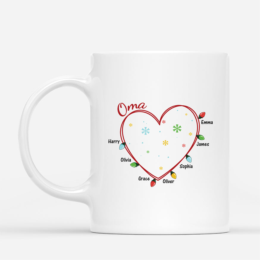 Oma Und Kinder Lichterkette Herz - Personalisierte Weihnachtsgeschenke | Weihnachtstasse
