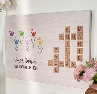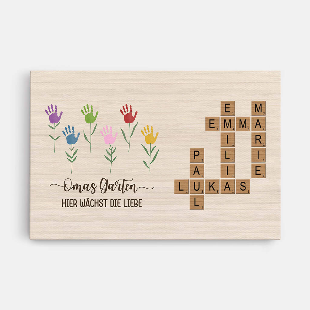 Omas Garten Hier Wächst Liebe Kreuzworträtsel - Personalisiertes Geschenk | Leinwand für Omas