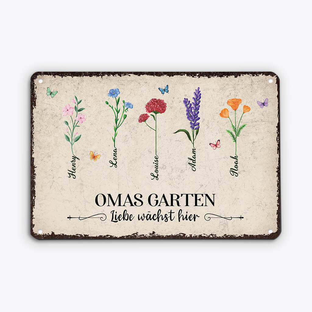 • Omas Garten Hier Wächst Liebe - Personalisiertes Geschenk | Türschild für Omas