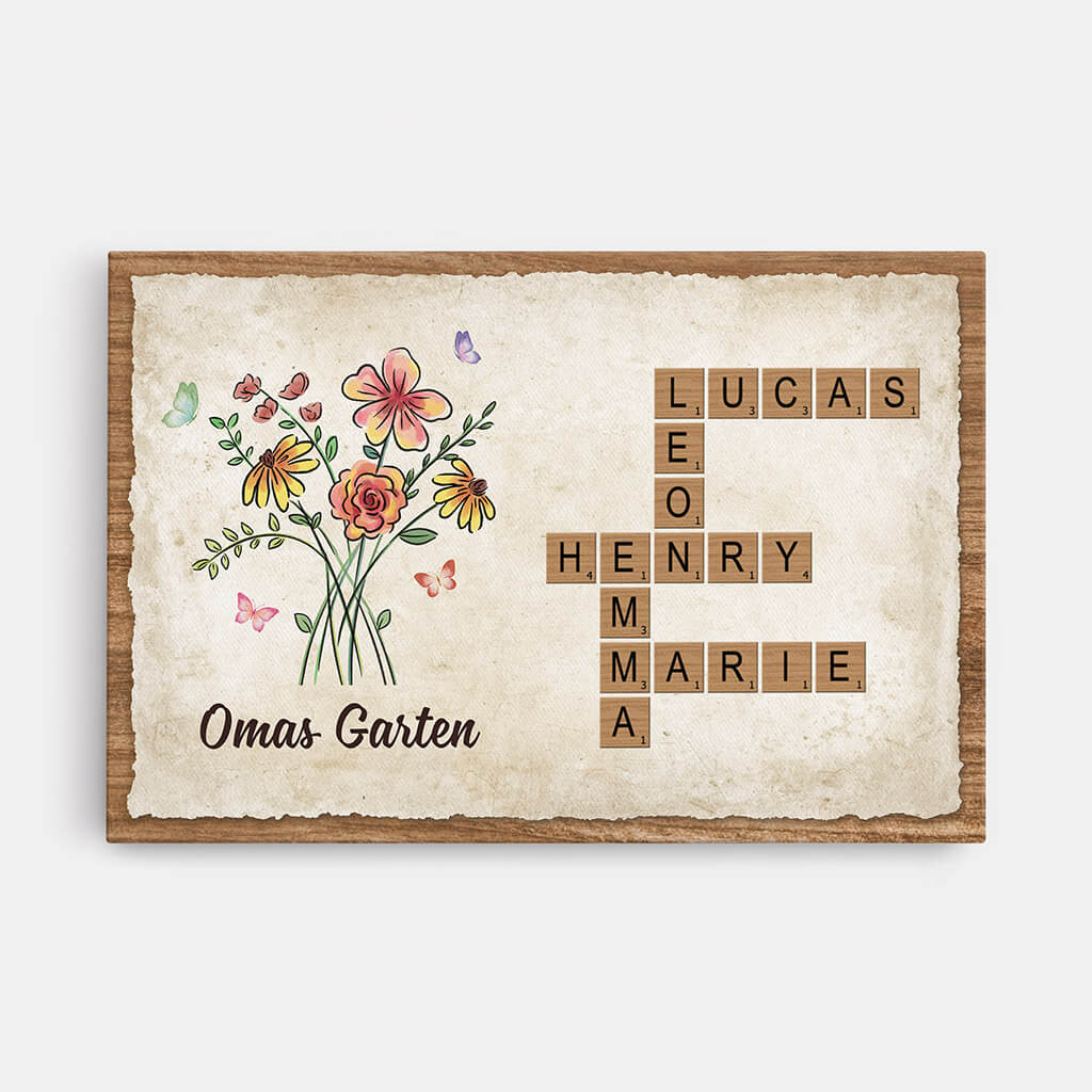 Omas/Mamas Blumengarten Kreuzworträtsel - Personalisiertes Geschenk | Leinwand für Frauen
