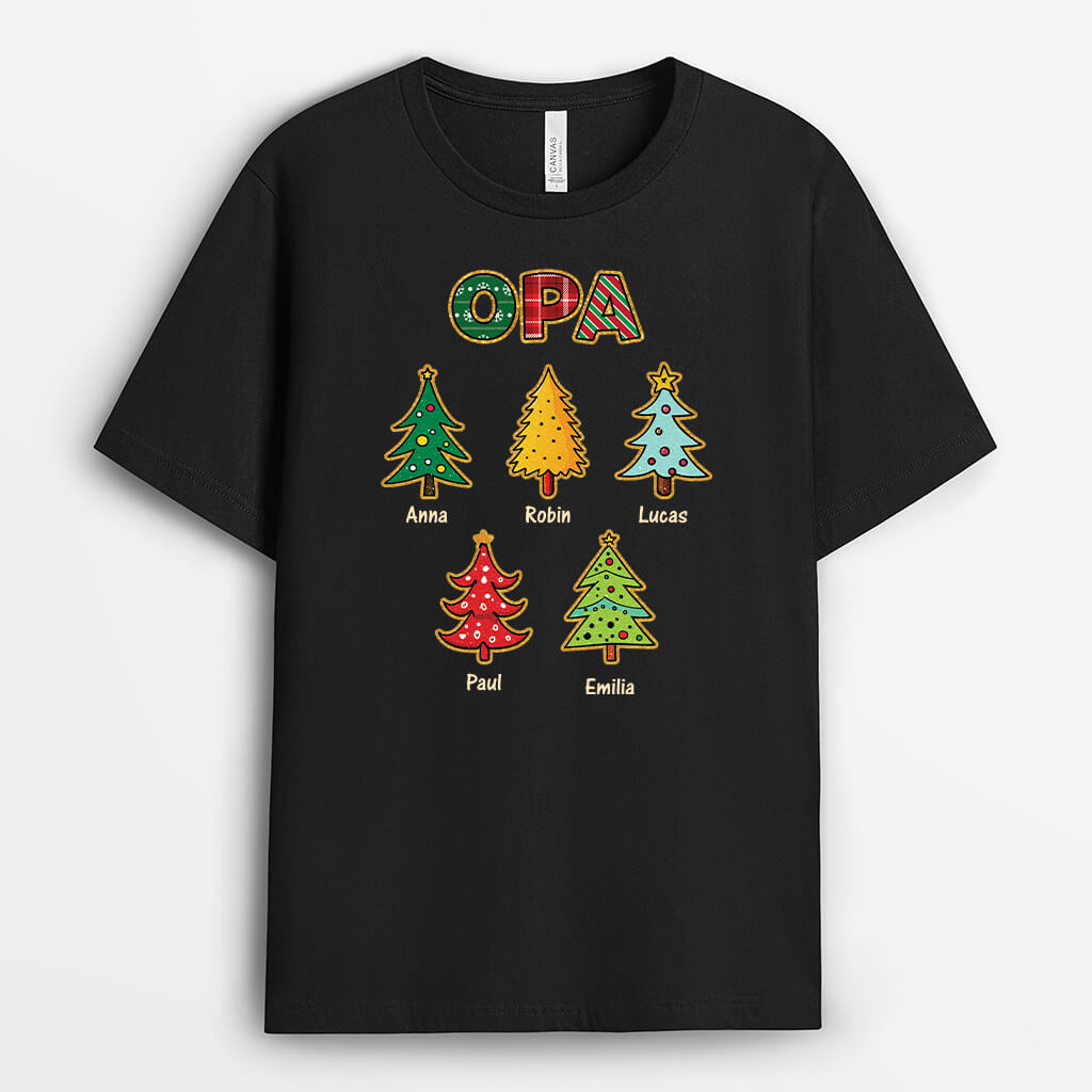 Opa Weihnachtsbaum mit Glitzer - Personalisiertes Geschenk | T-Shirt für Opas zu Weihnachten