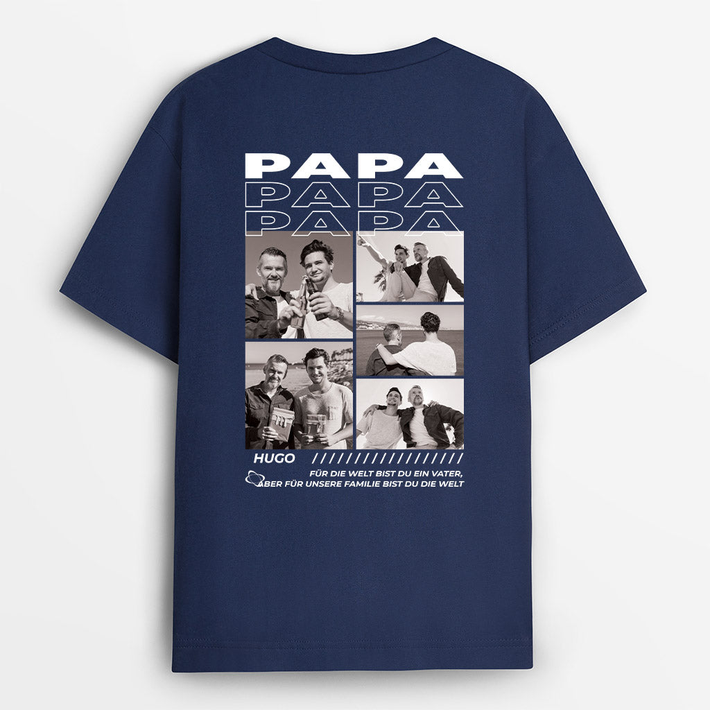 Papa Für Unsere Familie Bist Du Die Welt - Personalisiertes Geschenk | T Shirt Papa mit Foto