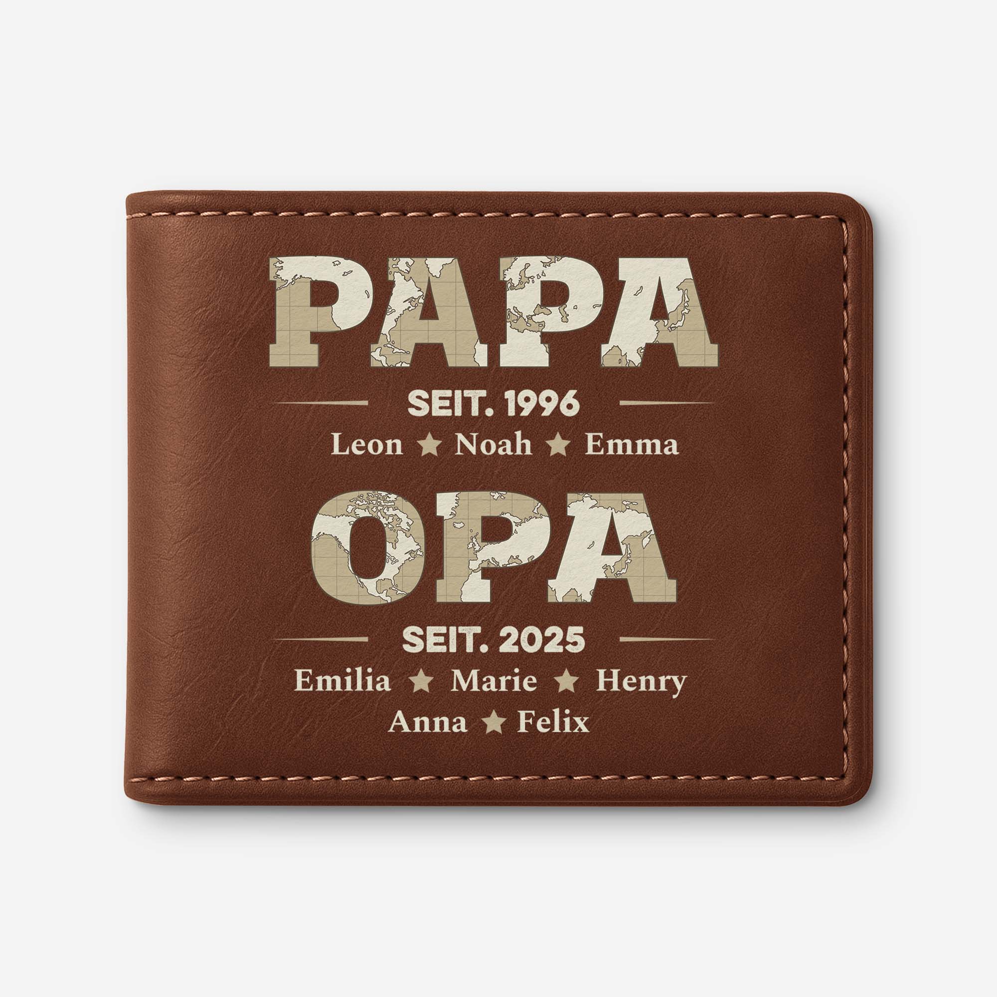 Papa Opa Seit Weltkarte - Personalisiertes Geschenk | Geldbörse Herren