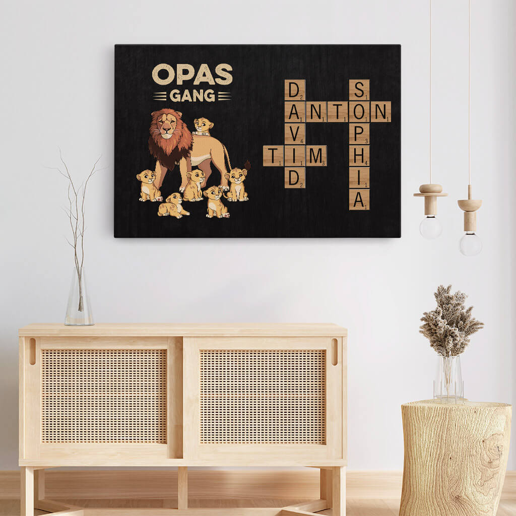 Papas Bande Löwe Kreuzworträtsel - Personalisiertes Geschenk | Leinwand für Papas