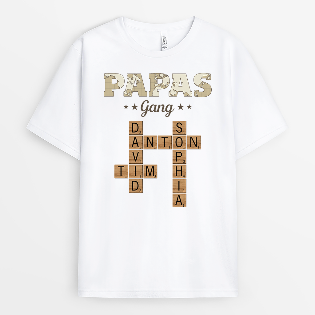 Papas Gang Kreuzworträtsel Weltkarte - Personalisiertes Geschenk | Weißes T Shirt Papa