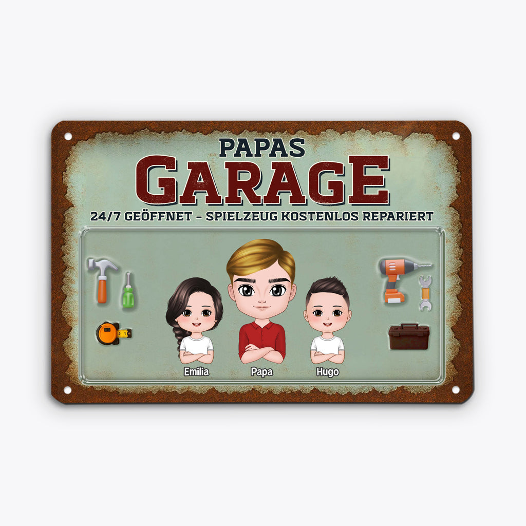 Papas Garage Chibi - Personalisiertes Geschenk | Lustiges Türschild Papa