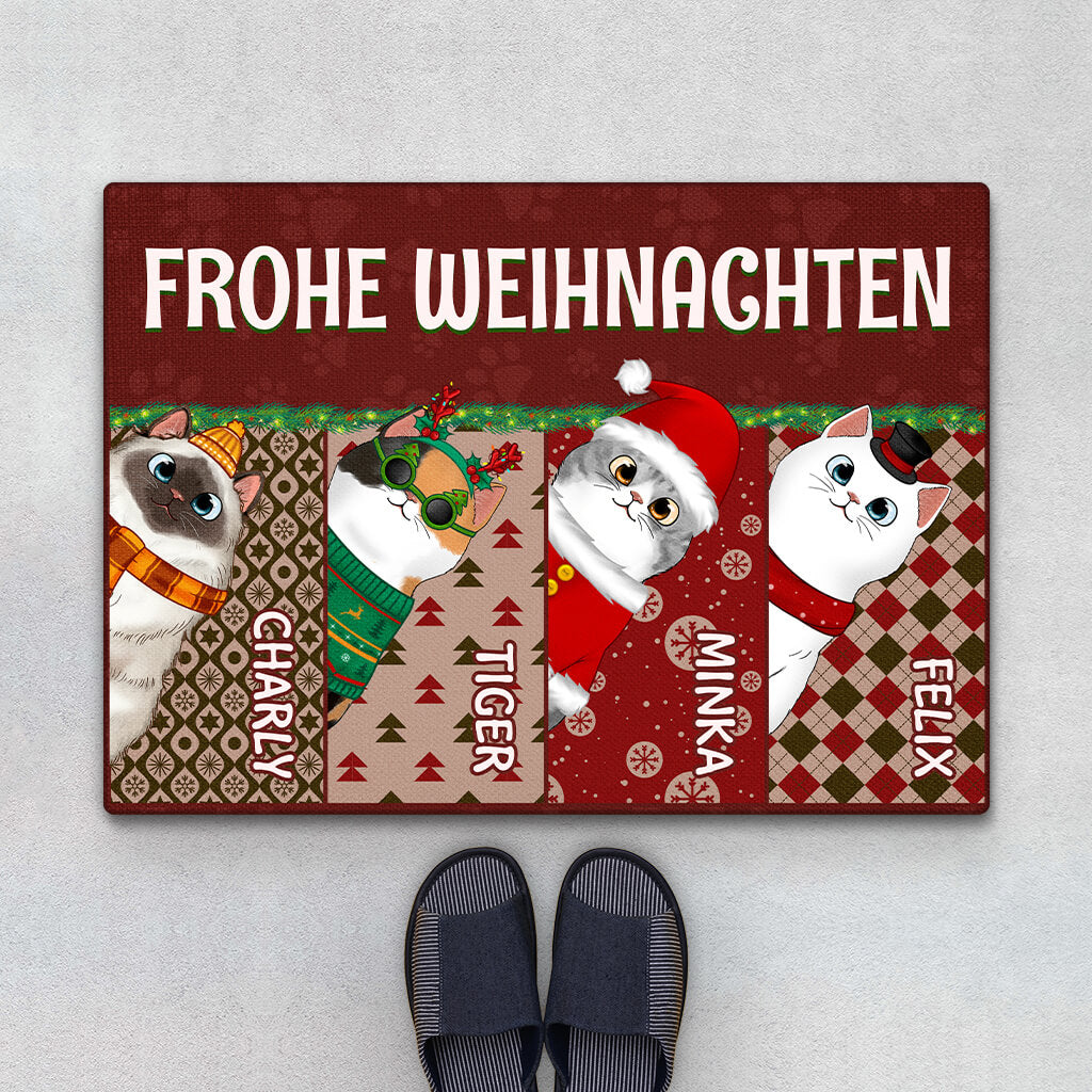 Frohe Weihnachten Süße Katzen - Personalisiertes Geschenk | Fußmatte für Katzenliebhaber