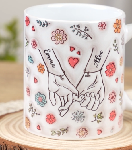 [3D-Druck-Effekt] Pinky Versprechen Geben - Personalisiertes Geschenk | Tasse für Paare