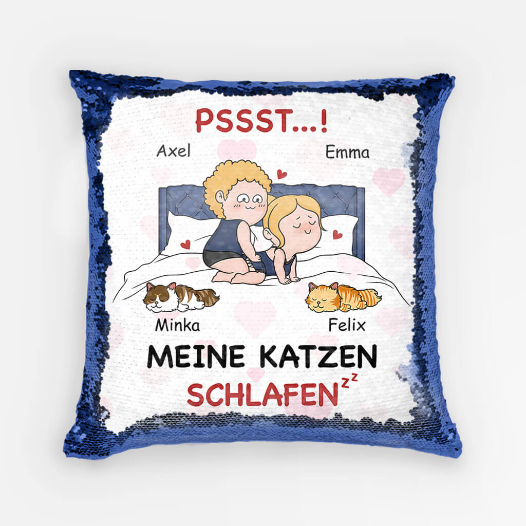 Pssst Meine Katzen Schlafen - Personalisiertes Geschenk | Pailletten Kissen für Paare