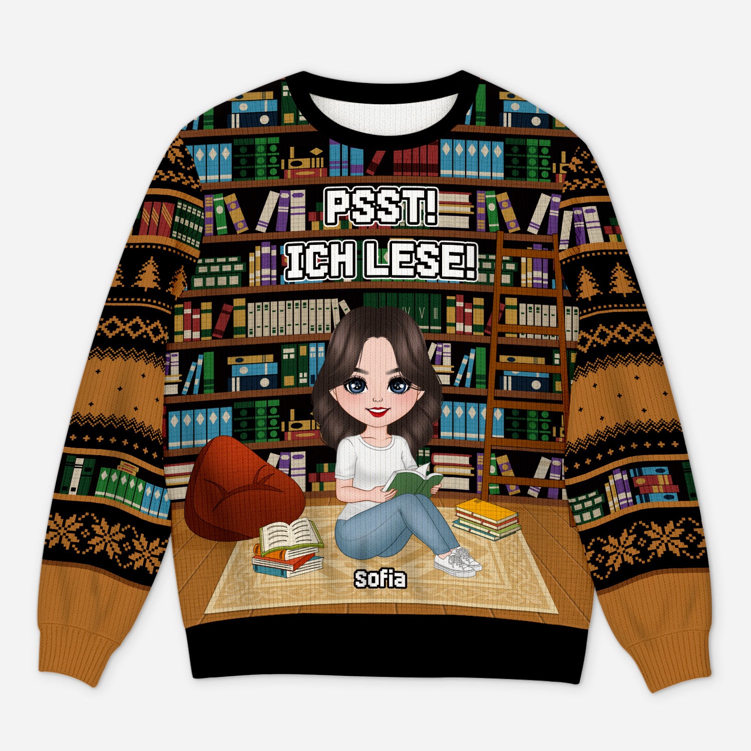 Psst Ich Lese - Personalisierte Weihnachtsgeschenke | Weihnachtspullover Leseratten Frauen