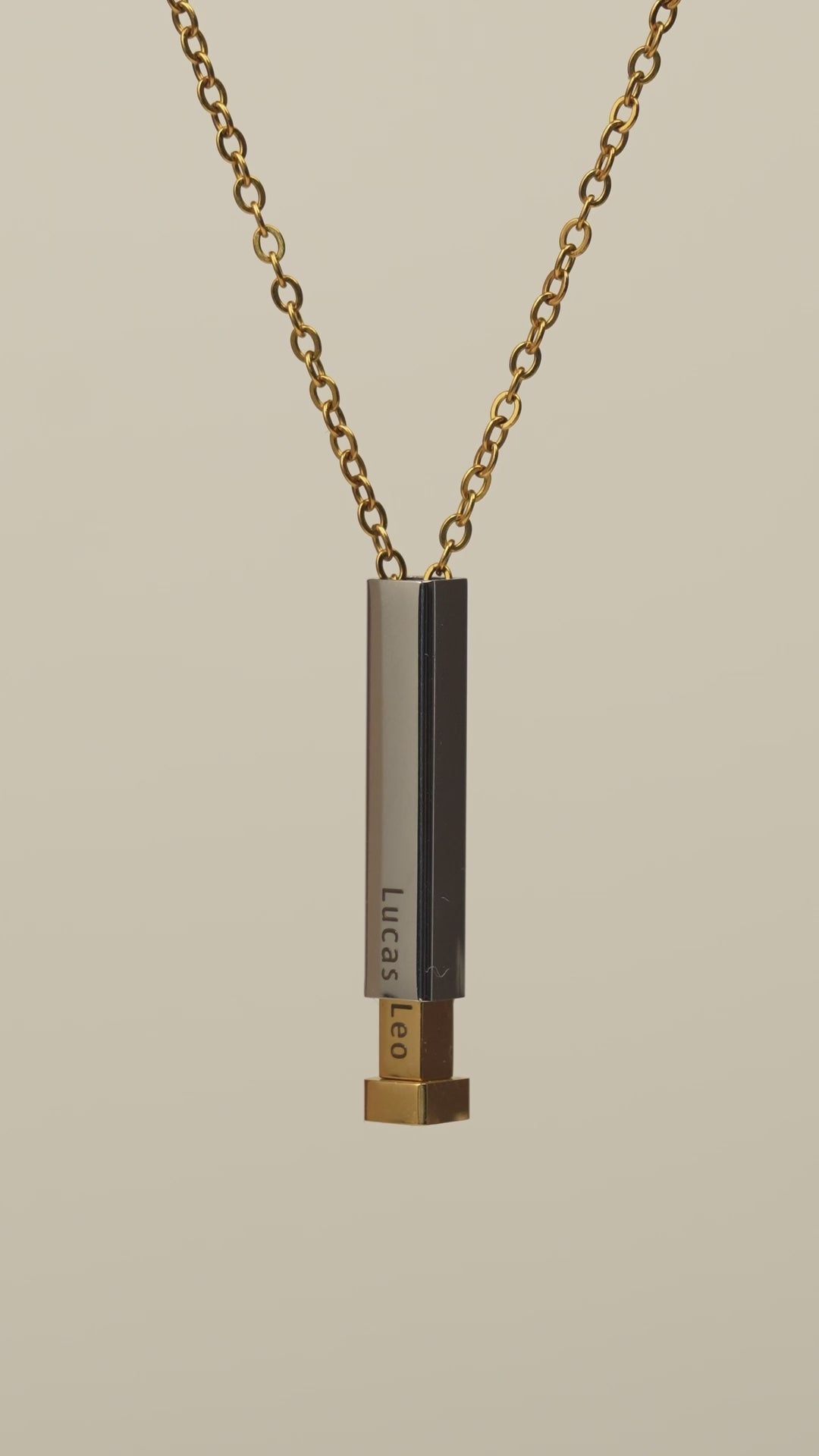 - Design: Stab-Halskette mit Geheimbotschaft: Diese elegante und moderne Stab-Halskette (Bar Necklace) birgt eine besondere Überraschung im Inneren. Die äußere Säule trägt eine einfache Gravur, während der versteckte innere Stab eine geheime Nachricht enthüllt, die nur der Trägerin oder dem Träger bekannt ist – eine wunderschöne Möglichkeit, persönliche Worte, Liebesbotschaften oder Affirmationen nah am Herzen zu bewahren.