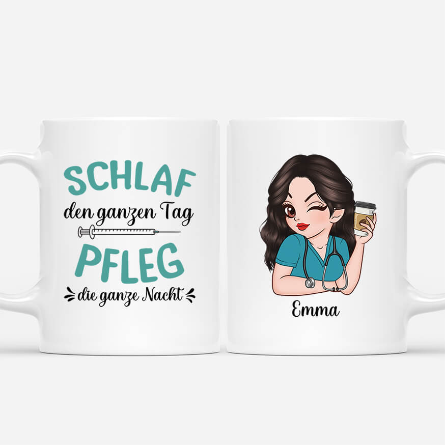 Schlaf Den Ganzen Tag Pfleg Die Ganze Nacht - Personalisiertes Geschenk | Tasse für Krankenschwester
