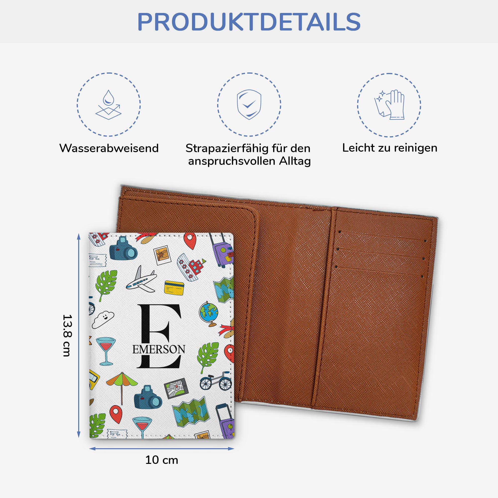 - Größe: 13,8 × 10 cm (passend für Standard-Reisepässe)