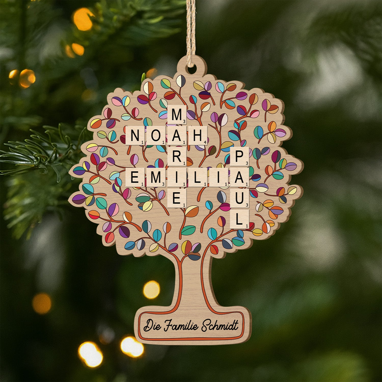 Stammbaum Familienname - Personalisierte Kreuzworträtsel Geschenke Familie | 1-Schicht-Holz-Ornament