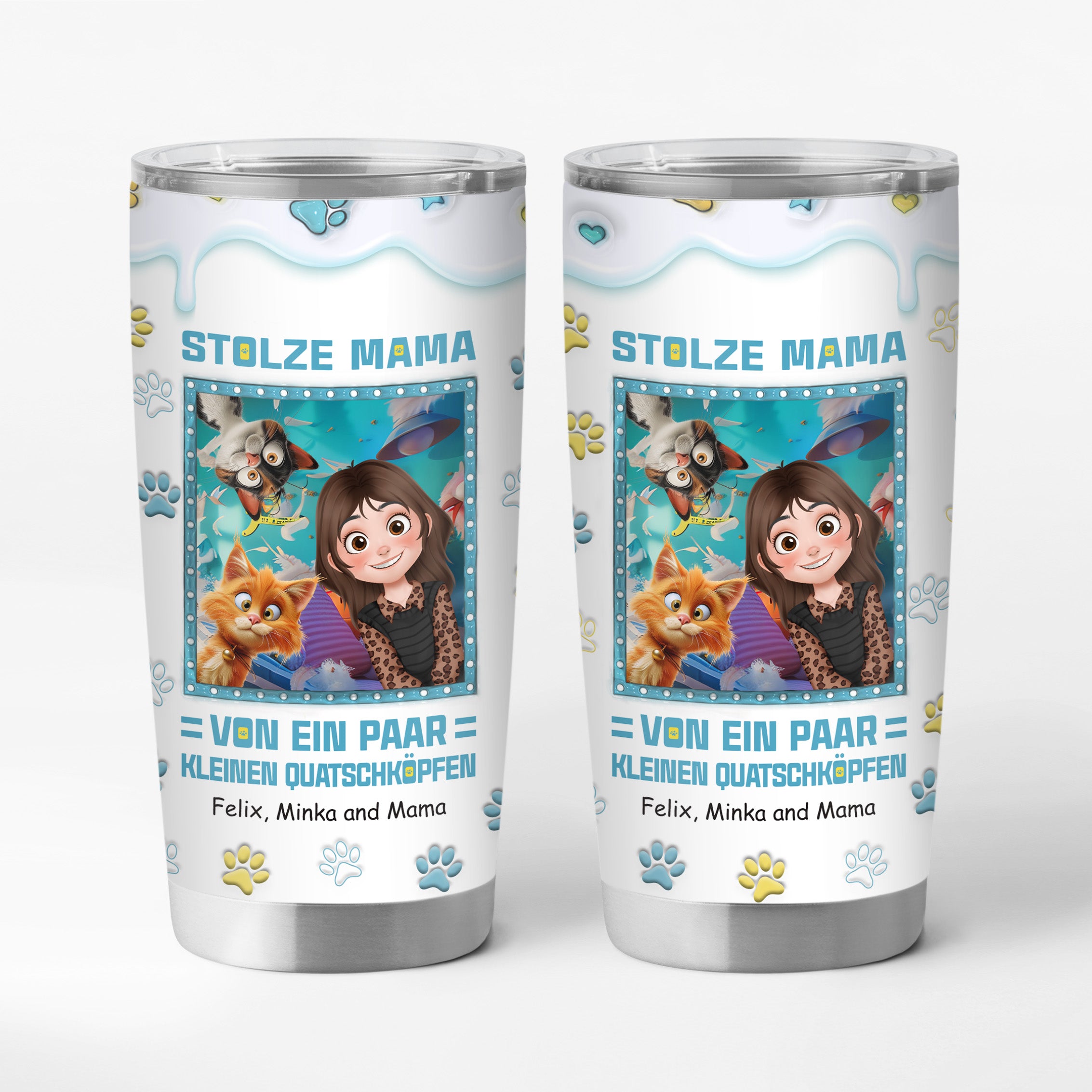 Stolze Mama Von Kleinen Quatschköpfen - Personalisiertes Geschenk | Thermobecher 20oz für Katzenmama