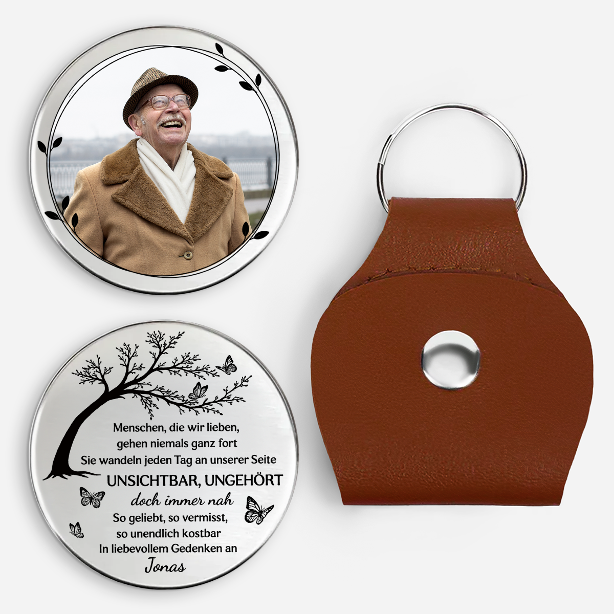 - Personalisierter Leder-Pocket Hug: Dieser charmante Begleiter besteht aus einem edlen PU-Leder-Etui im praktischen Schlüsselanhänger-Design. Im Inneren verbirgt sich ein runder Edelstahl-Token, der beidseitig mit Namen, Botschaften oder individuellen Designs bedruckt werden kann – ein persönliches Geschenk, das von Herzen kommt.