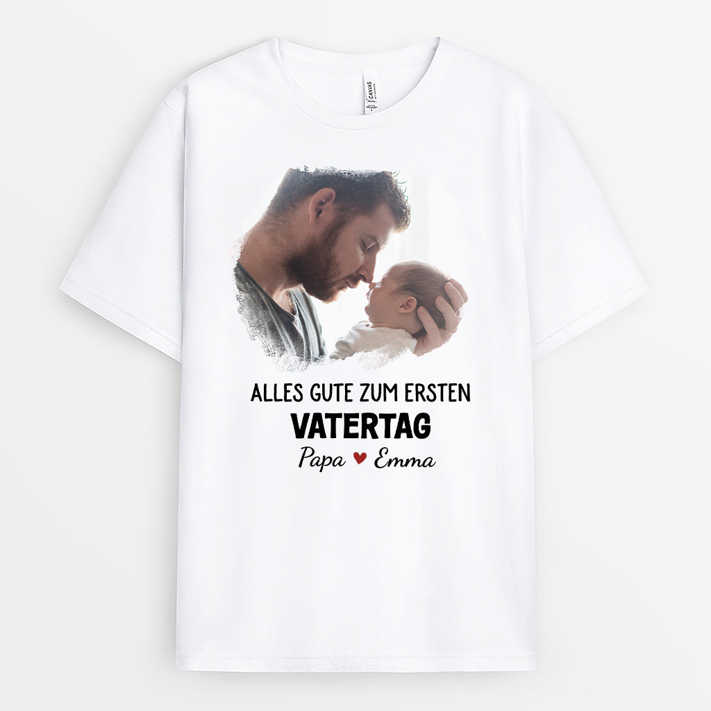 Unser Erster Vatertag Zusammen - Personalisiertes Geschenk | Weißes T Shirt Papa mit Foto