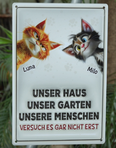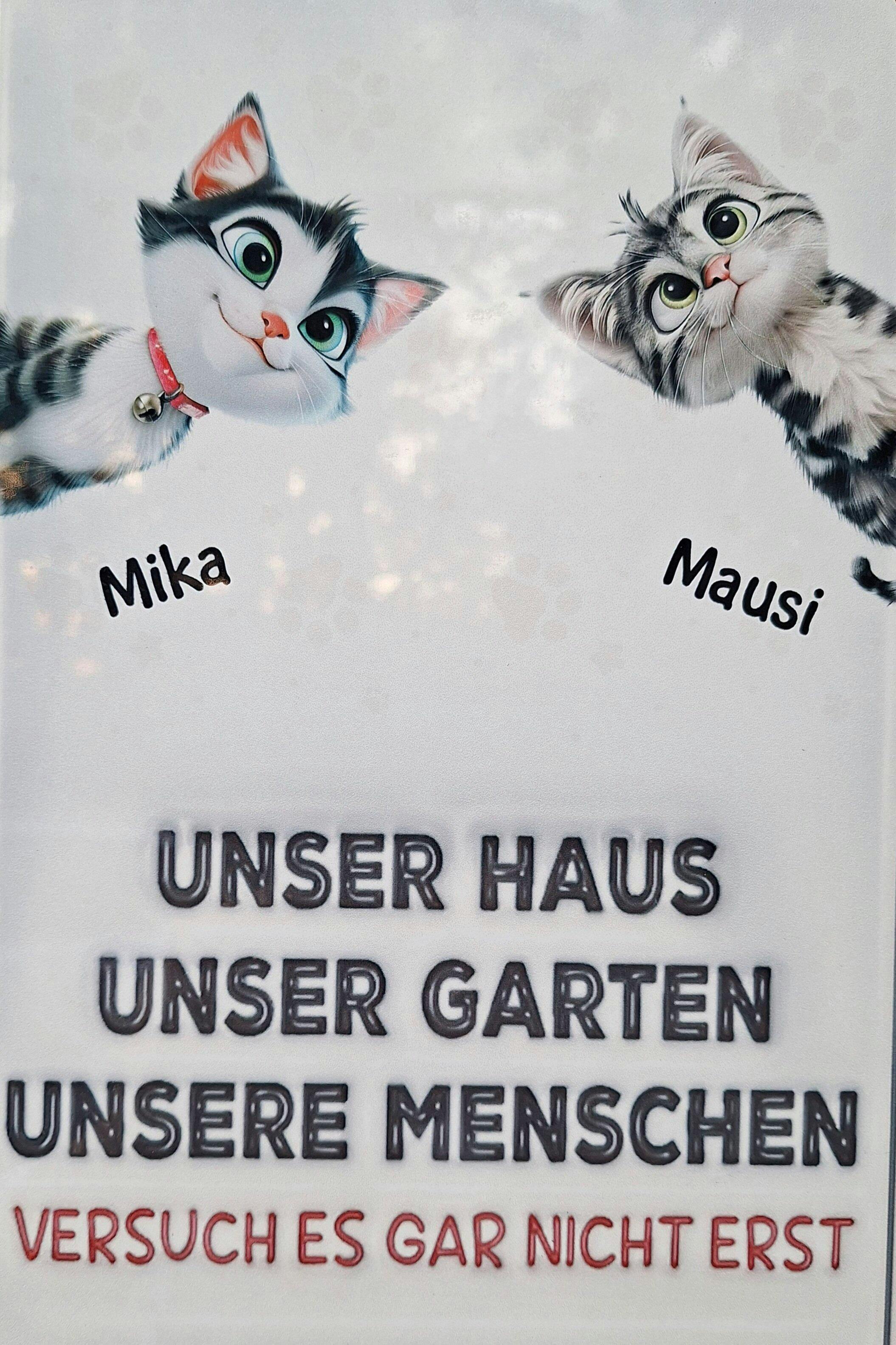 [3D-Druck-Effekt] Unser Haus - Personalisiertes Geschenk | Türschild Katze Cartoon