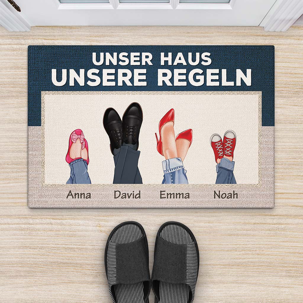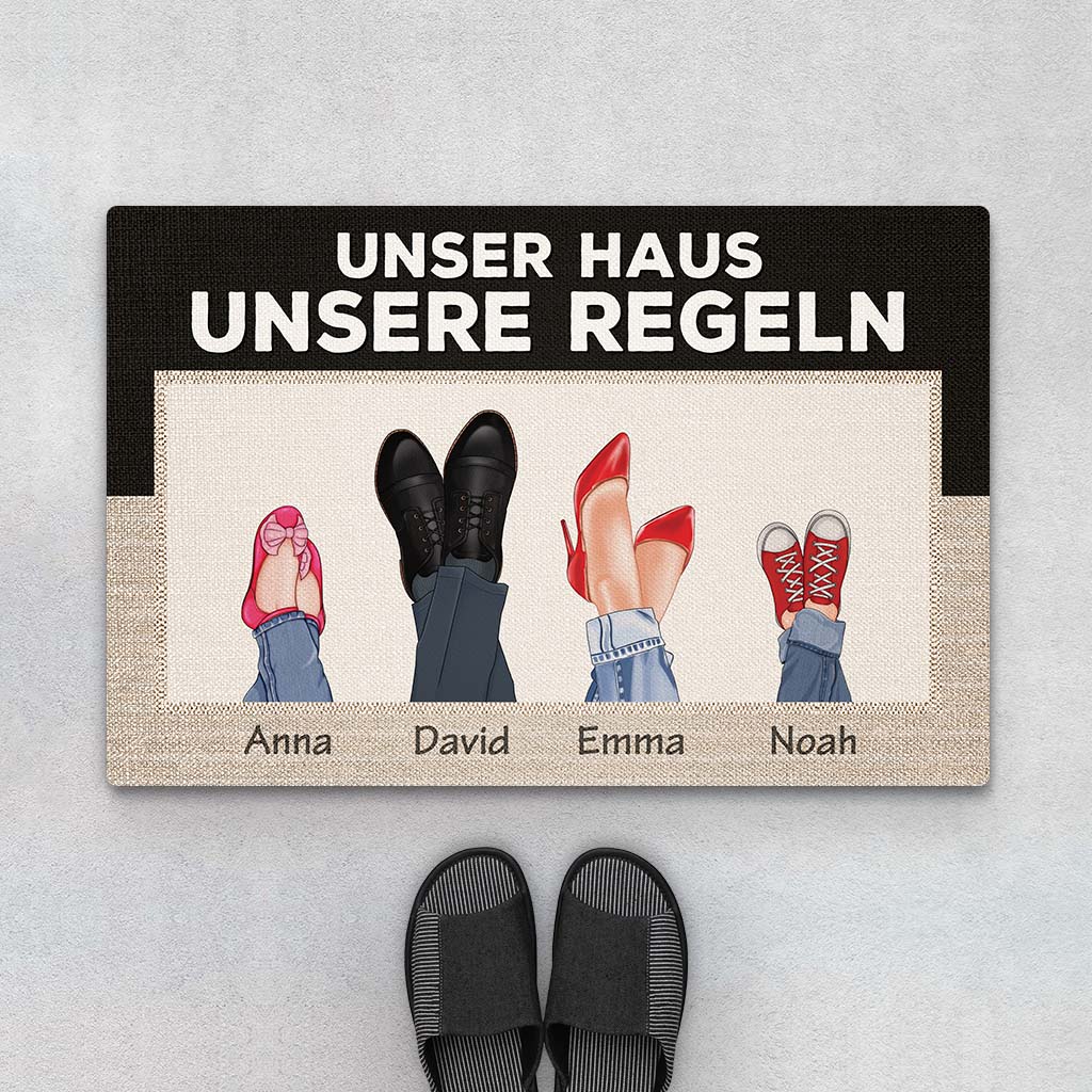 Unser Haus Unsere Regeln Familie Beine - Personalisiertes Geschenk | Fußmatte für die Familie