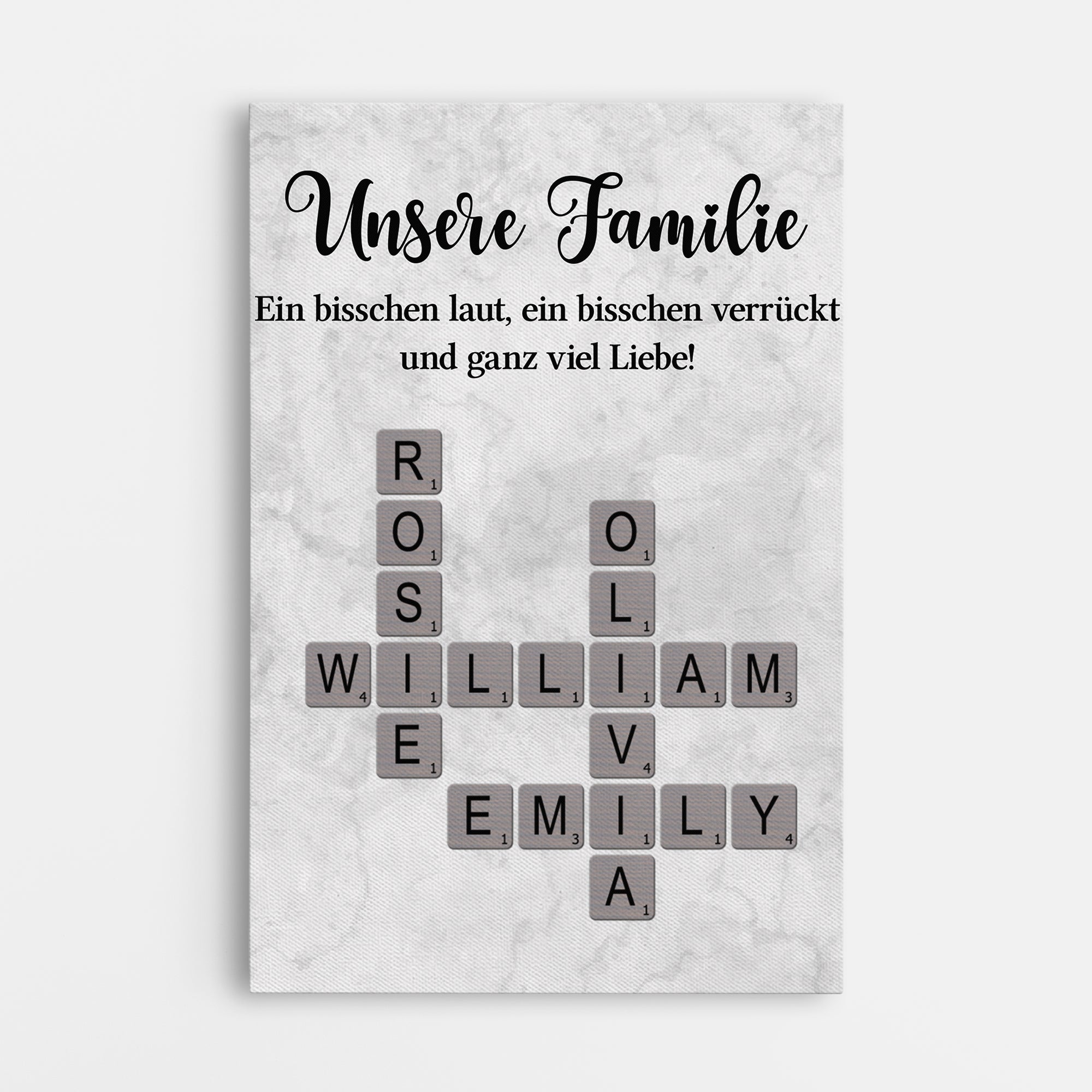 Unsere Familie Etwas Verrückt Etwas Laut Und Ganz Viel Liebe - Personalisiertes Kreuzworträtsel Geschenk | Leinwand