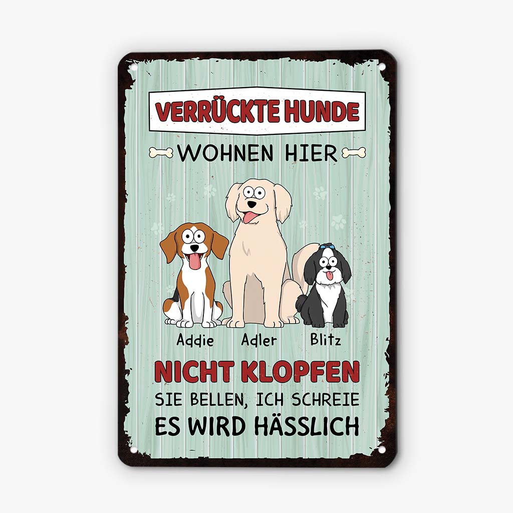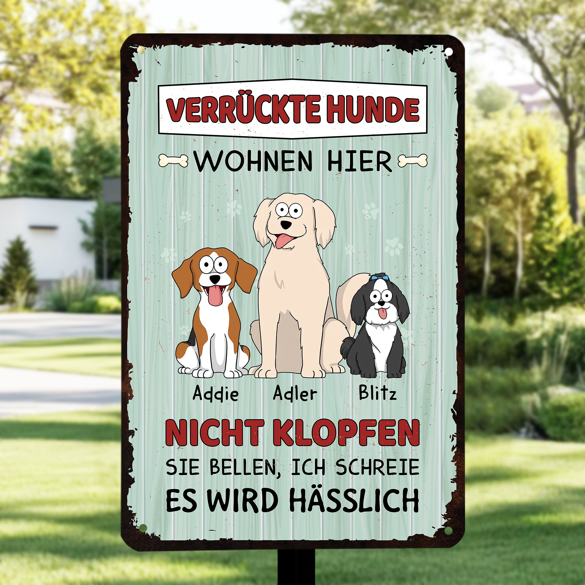Verrückte Hunde Wohnen Hier - Personalisiertes Geschenk | Türschild für Hundebeliebhaber