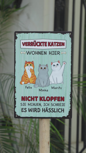 Verrückte Katzen Wohnen Hier - Personalisiertes Geschenk | Türschild für Katzenbeliebhaber
