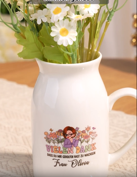 Vielen Dank Dass Du Mir Geholfen Hast Zu Wachsen - Personalisiertes Geschenk | Keramik Vase Lehrerin