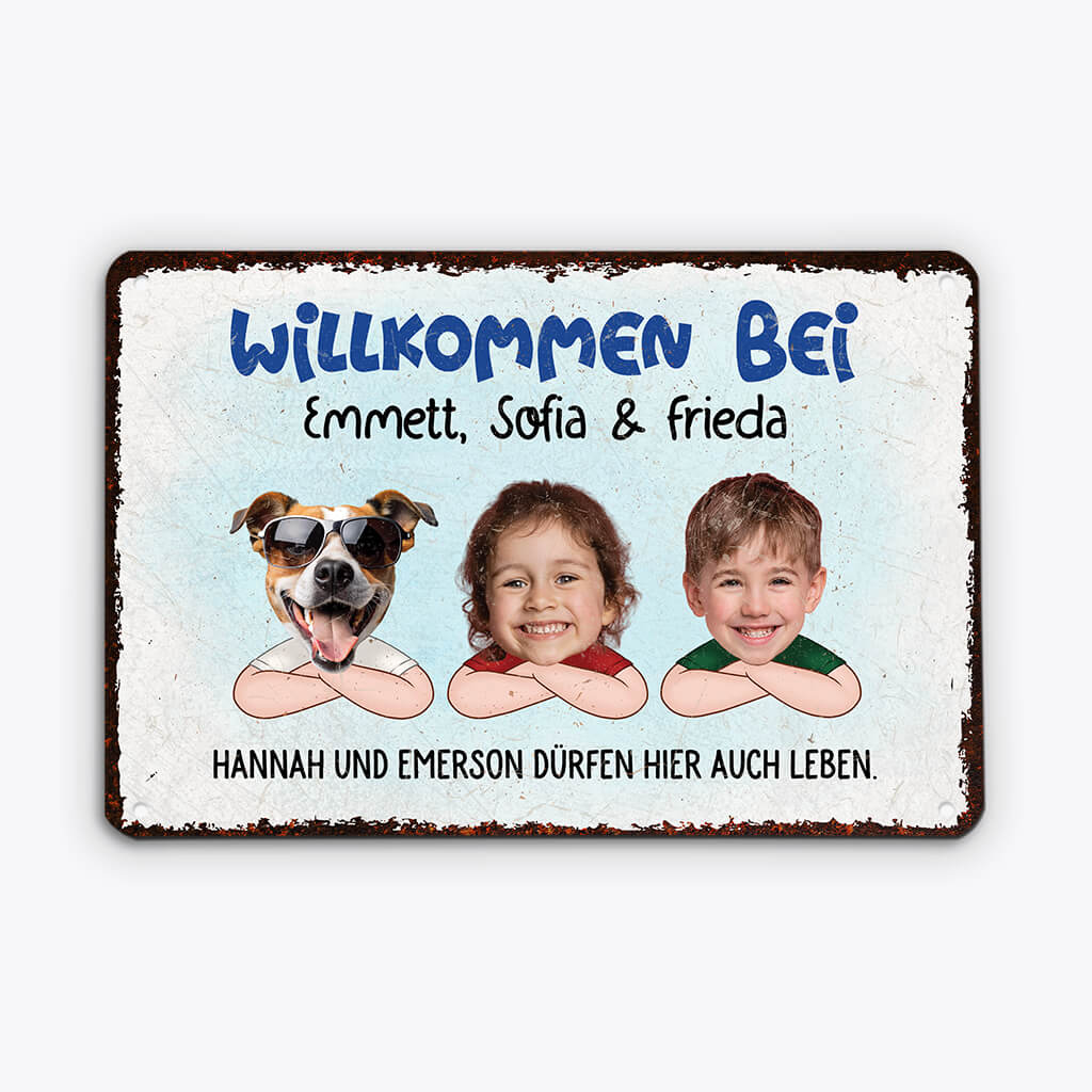 Willkommen Bei - Personalisiertes Geschenk | Türschild für die Familie mit Gesicht