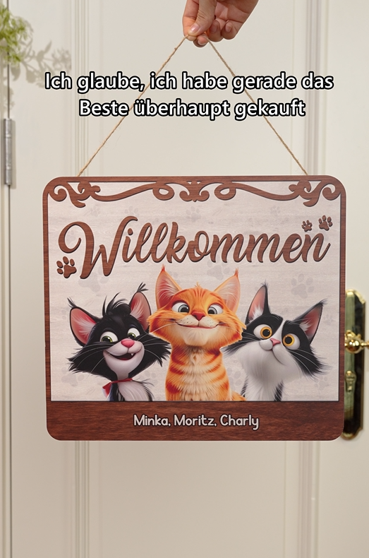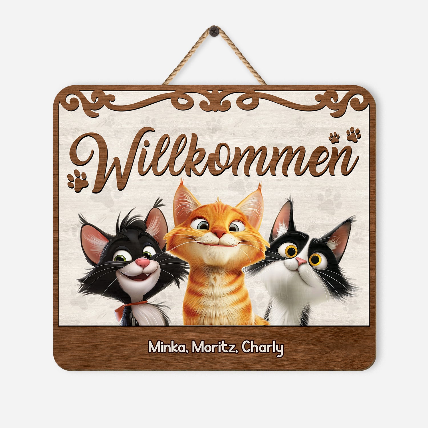 Willkommen - Personalisiertes Geschenk | Holzschild Katzen