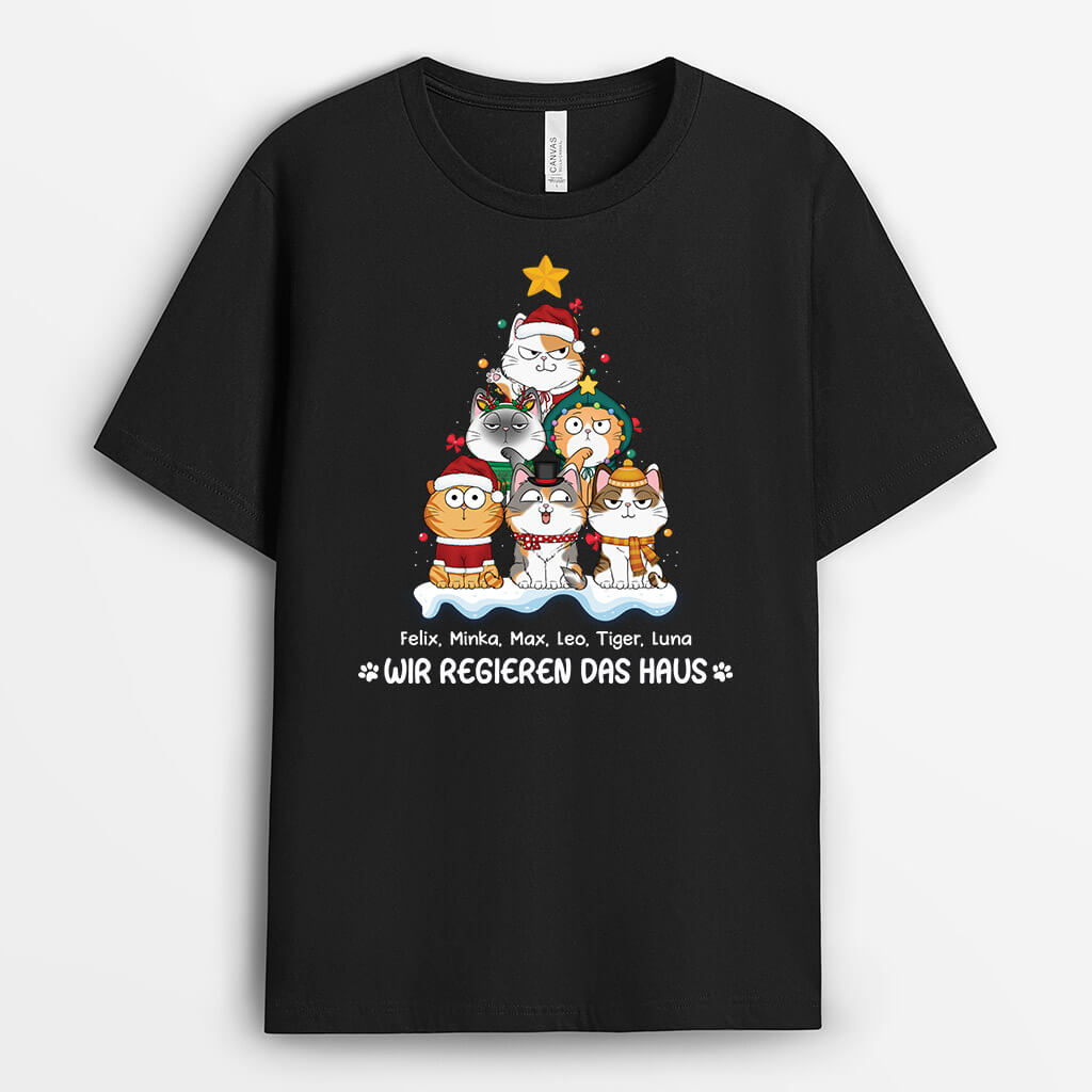 Wir Regieren Das Haus - Personalisiertes Geschenk | T-Shirt mit verspielten Katzen-Weihnachtsbaum