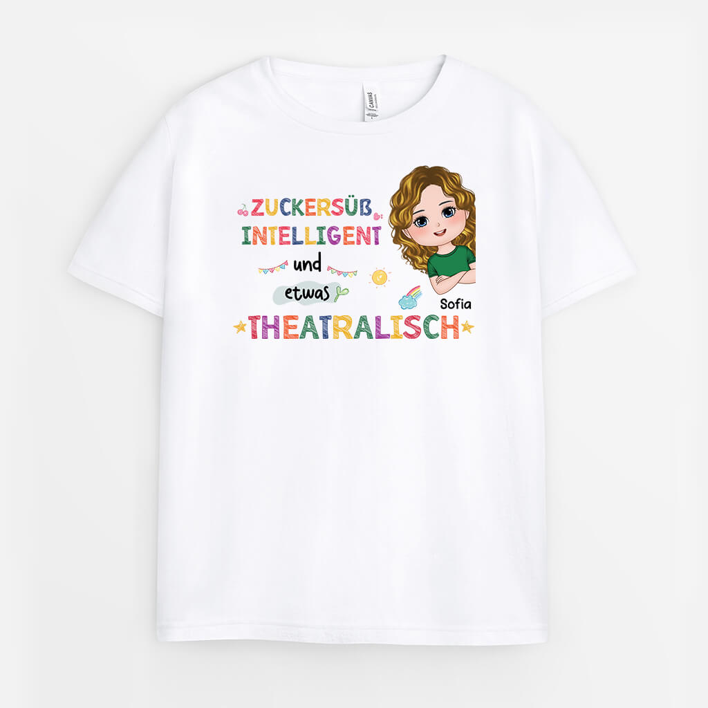 Zuckersüß Intelligent Und Etwas Theatralisch - Personalisiertes Geschenk | T-Shirt für Kinder