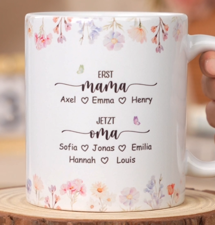 Zuerst Mama Jetzt Oma Blumen - Personalisiertes Geschenk | Tasse Mama