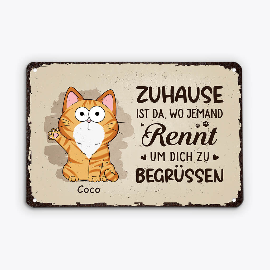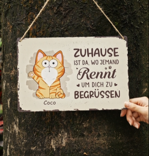 Zuhause Ist Da Wo Jemand Rennt Um Dich Zu Begrüssen - Personalisiertes Geschenk | Türschild für Katzenliebhaber